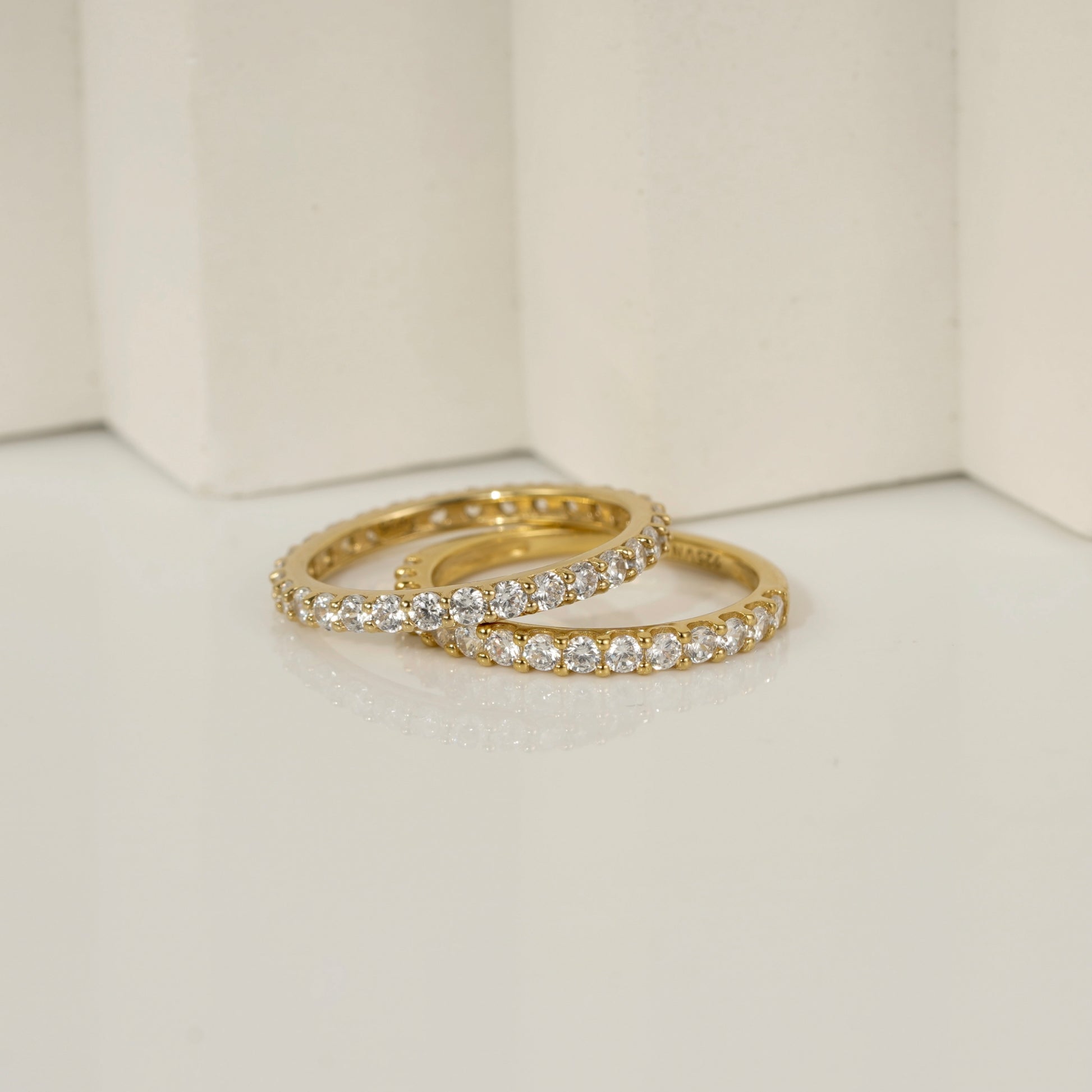 Delicate yet radiant, this lab-grown diamond half eternity band brings refined sparkle to any look. Crafted in solid 14K yellow gold, a row of finest quality round-cut lab-grown diamonds is gracefully set across the top half of the band, offering a timeless and versatile silhouette. Whether worn solo, stacked, or paired with an engagement ring, this piece adds a touch of brilliance to every moment